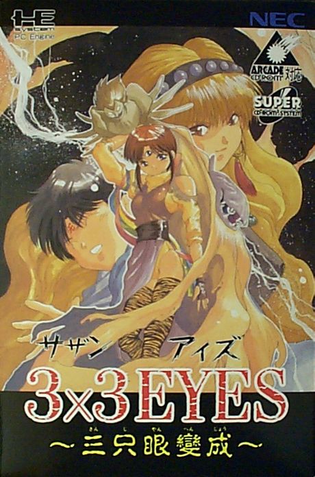 This seems to be the first 3x3 Eyes game made. It is a roleplaying game with the traditional top-down view and super-deformed characters, and some nice cut-scene graphics. The plot is somewhat similar to manga vol. 6.